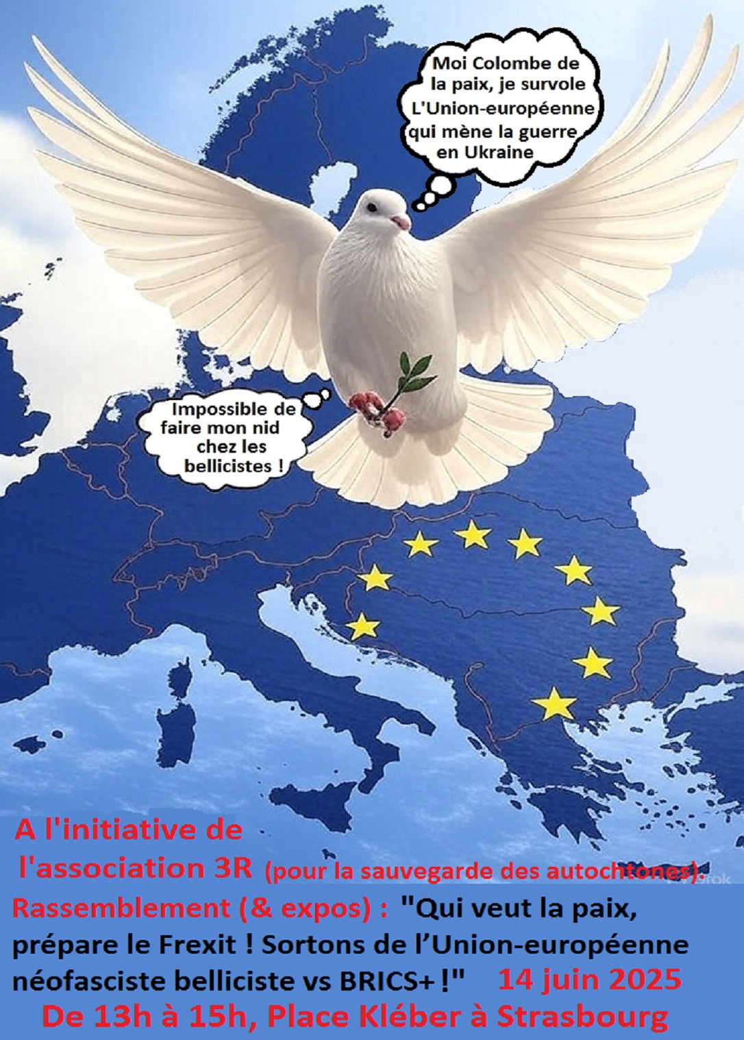 Rassemblement (& expos): Qui veut la paix, prépare le Frexit ! Sortons de l’Union-européenne néofasciste belliciste vs BRICS+.