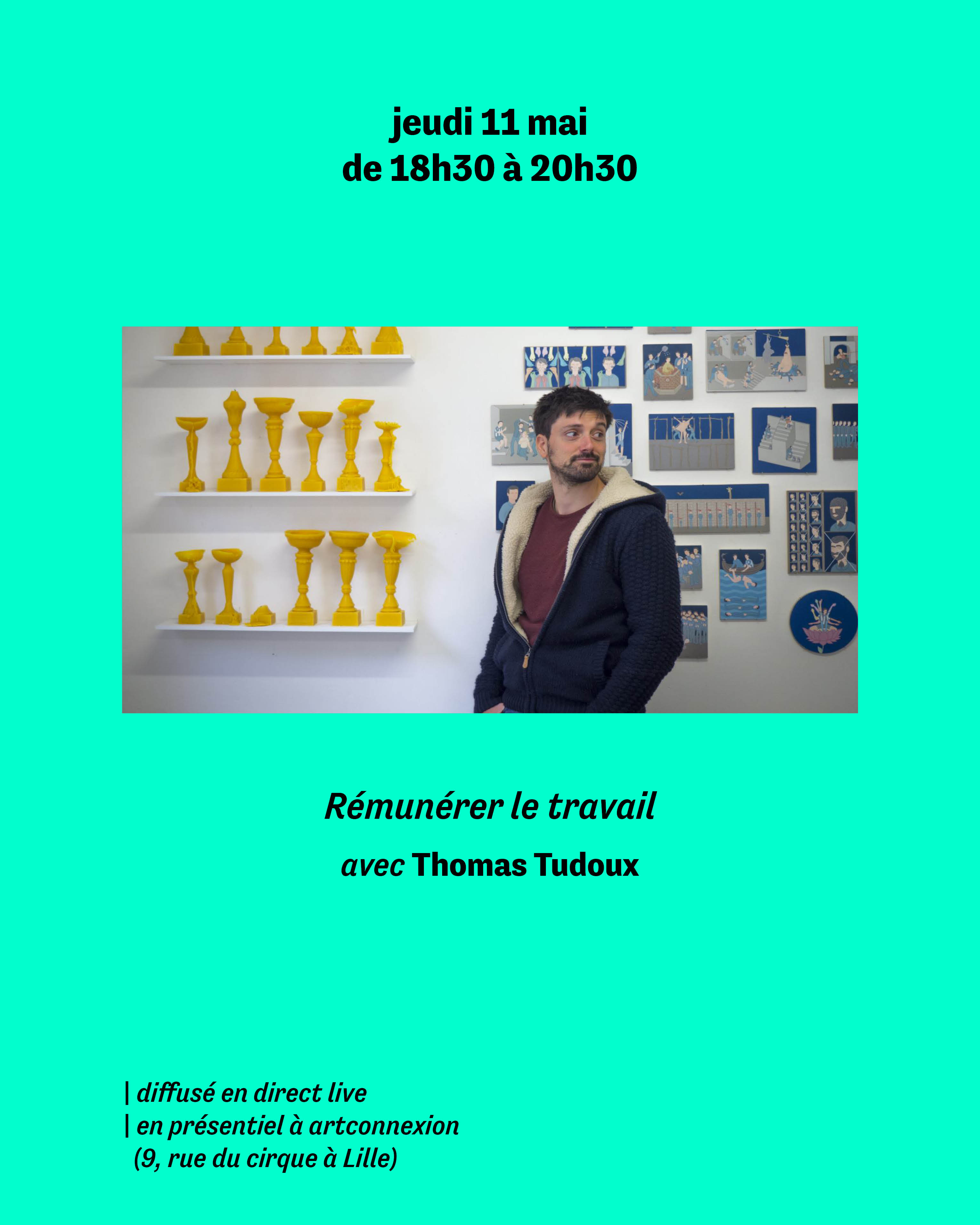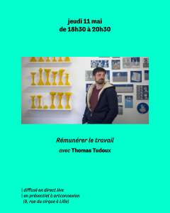 Le premier invité à inaugurer remonte-pente est l’artiste Thomas Tudoux. Collectivement, on se demandera : Quelles sont les cotisations des artistes-auteur·rice·s ? Ont-iels le droit au RSA ? Comment se calcule leur retraite ?