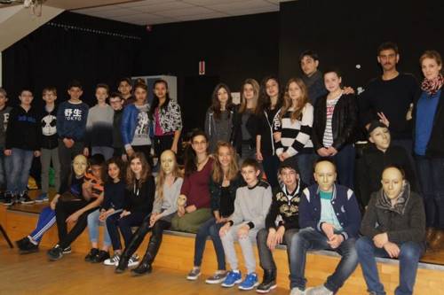 Avec les élèves de 5ème B vous proposent une soirée en deux parties : des scénettes de théâtre de papier inspiré de la renaissance et des perspectives du collège avec leurs propres créations musicales ; une deuxième partie orienté sur la manipulation de masques et d’un grand cadre de percussions...