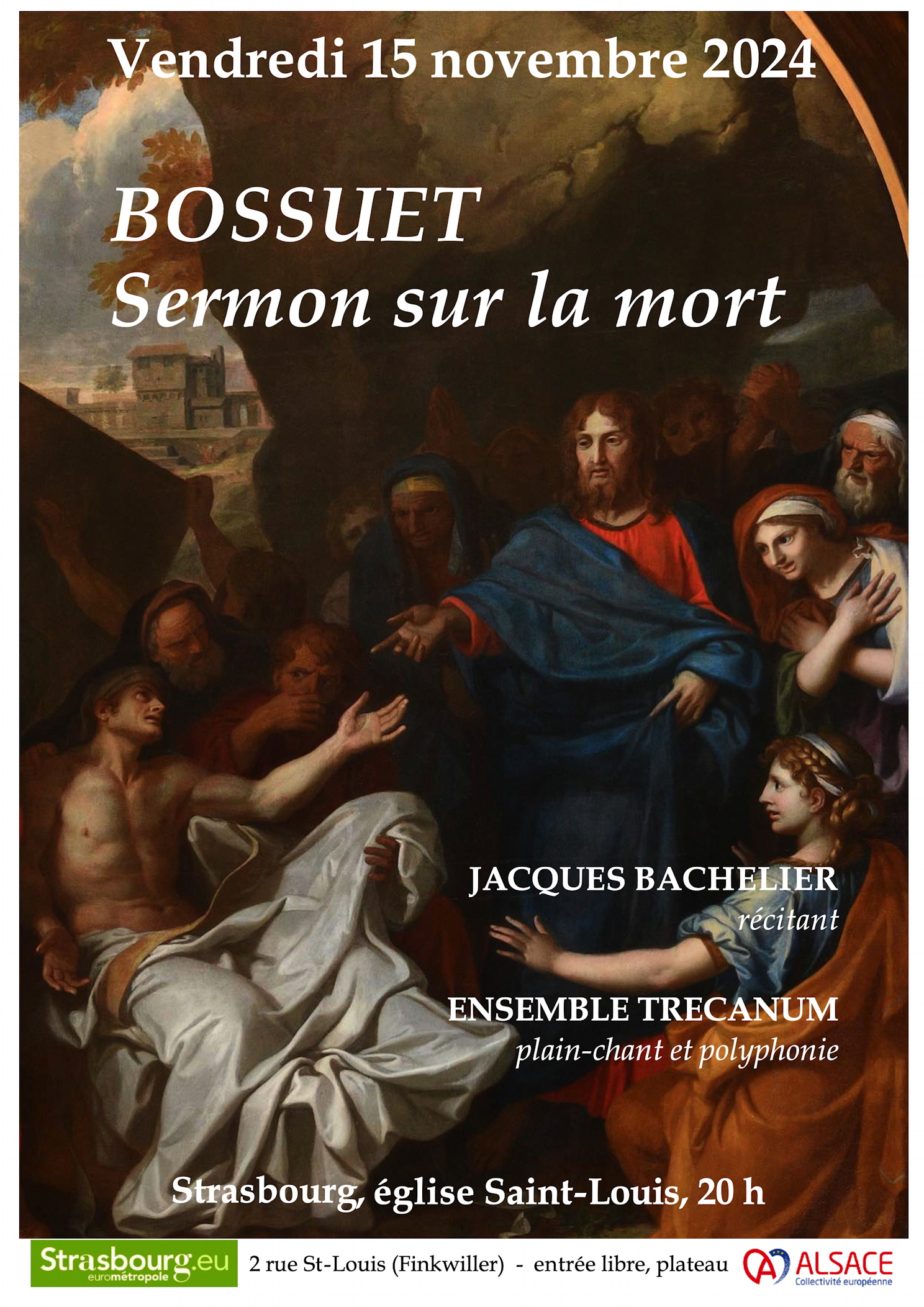 Œuvre de Bossuet, "Le Sermon sur la Mort" est un chef d’œuvre littéraire et l’un des plus prestigieux témoins de l’art de la prédication au XVIIè siècle, en même temps qu’il témoigne de la pensée religieuse de l'époque. Conçu initialement pour être prononcé devant le roi à Versailles, Bossuet part de l’épisode évangélique de la résurrection de Lazare, l'ami du Christ; il propose à l'auditoire d’affronter avec lui le spectacle de la mort, et de se désabuser des valeurs passagères et périssables, et évoque «  l’abîme immense » du temps et les situations transitoires. Loin de fuir le spectacle de la mort, Bossuet pose la question fondamentale de la nature humaine et invite l’être humain à rentrer en lui-même pour découvrir l'immortalité, rappeleant que la mort n’est pas définitive.