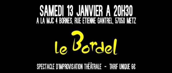 L’entrée est à 6 Euros (mais il existe des tarifs réduits).Pour réserver, merci d’envoyer un message à l’adresse lebordel.impro@gmail.com, en mentionnant votre nom, votre prénom et le nombre de places désirées.