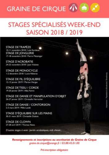 Stage d’acrobatie, du 24 au 25 novembre 2018 Avec Joan Vialatte proposé par Graine de Cirque !