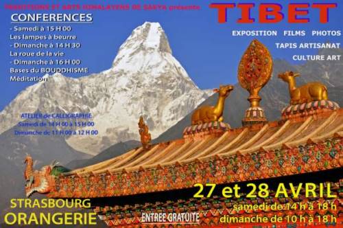 des films sur le Tibet commentés par l’auteur, les produits et artisanat exposé sont proposés à la vente, bijoux, objets et tapis faits mains, encens, bols chantant...